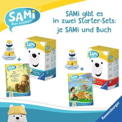 Im Starter-Set enthalten sind ein SAMi Lesebär und das Buch "Der größte Schatz der Welt": Der Affenjunge Mono möchte für seine Mama einen Schatz finden. Doch schon bald muss er enttäuscht feststellen, dass es im Dschungel kein Gold und keine Diamanten gibt. Im Gespräch mit anderen Tieren erfährt Mono aber, dass ein Schatz auch ganz anders aussehen kann.