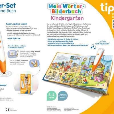 tiptoi-Stift, Verbindungskabel, Buch „Mein Wörter-Bilderbuch - Kindergarten", Anleitung