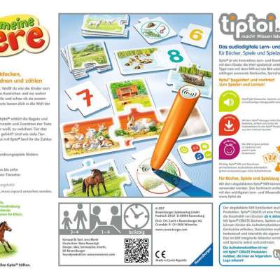 Ob allein oder gemeinsam: tiptoi erklärt die Regeln und führt durch die Spiele. Kurze Texte, einfache Handhabung und begleitende Informationen für Eltern machen das Kinderspiel Alle meine Tiere zum idealen tiptoi Einstieg ab drei Jahren.