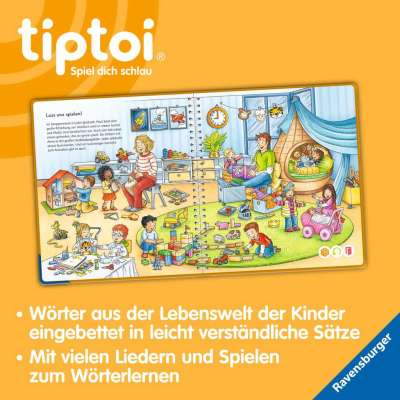 Mit tiptoi spielerisch den Wortschatz erweitern: Kinder ab 3 Jahren lernen Wörter aus ihrer Lebenswelt, eingebettet in leicht verständliche Sätze. Spiele und Lieder vertiefen den gelernten Wortschatz.