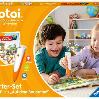Auspacken und loslegen! Das Starter-Set ist perfekt für den Einstieg in tiptoi - das spielerische Lernsystem. Die benötigte Audiodatei ist auf dem Stift vorinstalliert und der integrierte Akku geladen. So können Kinder ab 4 Jahren in dem enthaltenen Buch „Auf dem Bauernhof“ sofort den Alltag in der modernen Landwirtschaft entdecken. Dank der Geräusche, Texte, Lieder und Hörspiele tauchen die Kinder eigenständig und interaktiv in die Szenen ein. So macht Lernen richtig Spaß!
