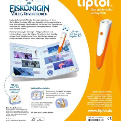 Mit dem tiptoi-Stift tauchen die Kinder in die beliebte Welt der Eiskönigin ein und erwecken so Anna, Elsa und ihre Freunde zum Leben. Das Buch beinhaltet die Handlung des Erfolgsfilms Die Eiskönigin – Völlig unverfroren und zweier Kurzfilme. Neben der packenden Geschichte begeistern spannende Informationen sowie lustige, interaktive Spiele die kleinen Fans von Anna und Elsa.