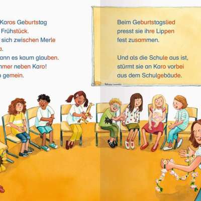 Karo hat Geburtstag. Ausgerechnet heute streitet sie sich mit ihrer besten Freundin Josefine. Es gibt eine wilde Räuberjagd im Garten. Doch Josefine und Karo haben sich immer noch nicht wieder vertragen. Als Josefine hinfällt, kommt Karo ihr zu Hilfe. Josefine sieht, dass Karo ihr Geschenk am Arm trägt: ein Freundschaftsarmband. Josefine trägt genauso eines an ihrem Arm. Die beiden vertragen sich wieder und finden gemeinsam den Räuberschatz.