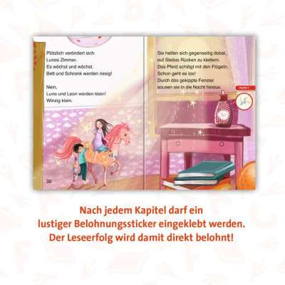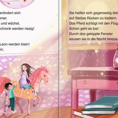 Luna ist sauer, weil ihr Bruder Leon ihr geflügeltes Pferd vollgekritzelt hat. In der Nacht spricht Stella plötzlich zu ihr. Sie möchte zum Treffen der magischen Tiere, fühlt sich aber mit den Kritzeleien hässlich. Zum Glück kann Leon helfen.