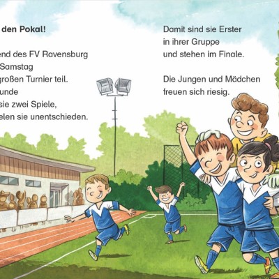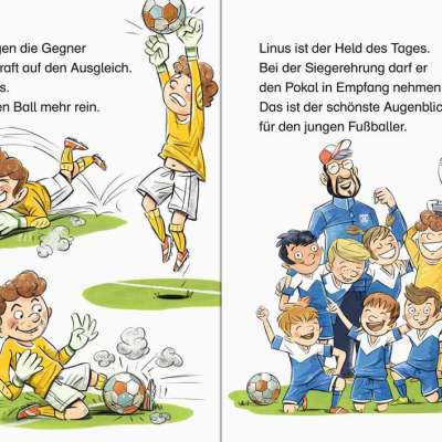 In den vier Geschichten dieses Buches dreht sich alles um Fußball: Dank Torwart Linus gewinnt die F-Jugend des FV Ravensburg das Finale. Im Zeltlager spielen Luis und seine Kumpels nach dem Dauerregen in Badehosen Schlammfußball. Noahs Opa beeindruckt auf dem Bolzplatz mit seinen Fußballkünsten. Und schließlich zeigt Emma, dass Mädchen ziemlich gut kicken können.