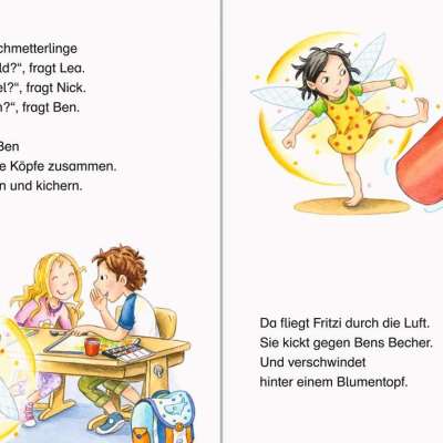 Lara möchte im Unterricht zum Thema „Fliegen“ Elfen vorstellen und bringt Fritzi mit in die Schule. Doch als sie ihren Schulranzen öffnet, gibt es von der Elfe keine Spur. Die anderen Kinder lachen, denn sie glauben nicht an Elfen – bis auf Ben. Aber was fliegt plötzlich auf dem Schulhof durch die Luft? Wer trommelt im Deutschunterricht? Und wer wirft das Wasserglas im Kunstunterricht um, wenn es gar keine Elfen gibt?