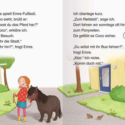 Pony Coco ist zu Besuch in der Stadt. Auf dem Balkon knabbert sie an Mamas Blumen. Der Busfahrer will kein Pony mitnehmen. Auf dem Spielplatz aber sind die Kinder begeistert von Coco. Jeder will sie streicheln. Und Coco? Die macht sich heimlich auf den Weg zum Obststand. Pferdespaß für Leseanfänger ab Klasse 1.