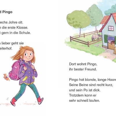 Klaras bester Freund heißt Pingo und ist ein Pony. Pingo will mal bei Turnieren mitmachen, aber der doofe Basti sagt, dass ein Pony das nicht kann. Also fängt Klara an, mit Pingo zu üben!