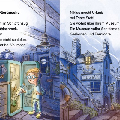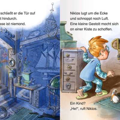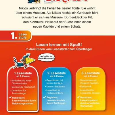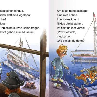 Niklas macht Ferien bei seiner Tante. Die wohnt über einem Museum im Hafen. Nachts entdeckt Niklas einen kleinen Mann, der sich als „Klabauter Pit“ vorstellt. Pit ist auf der Suche nach einem neuen Kapitän und nach einem geheimen Schatz. Spannende Schatzsuche zum Miträtseln für Kinder ab Klasse 1.