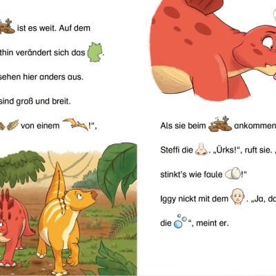 Iggy Iguanodon bleibt im Sumpf stecken. Kann seine Freundin Steffi Stegosaurus ihm rechtzeitig helfen? Auch Mama Brontosaurus braucht Hilfe: Eines ihrer Eier fehlt! Und die Triceratopse müssen einen T-Rex abwehren.