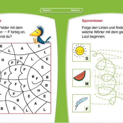 Diese kunterbunte Rätselsammlung packt auch Lesemuffel: Bilderrätsel, Buchstabenrätsel, Gitterrätsel … – da ist für jeden Rätselfuchs was dabei. Und beim Tüfteln fällt den Kindern gar nicht auf, dass sie die ersten Schritte in Richtung Lesenlernen machen. Die Rätsel sind abwechslungsreich und auf die Fähigkeiten von Vorschülern abgestimmt, so bleiben die jungen Lesestarter leichter dran.