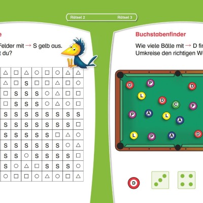 Diese kunterbunte Rätselsammlung packt auch Lesemuffel: Bilderrätsel, Buchstabenrätsel, Gitterrätsel … – da ist für jeden Rätselfuchs was dabei. Und beim Tüfteln fällt den Kindern gar nicht auf, dass sie die ersten Schritte in Richtung Lesenlernen machen. Die Rätsel sind abwechslungsreich und auf die Fähigkeiten von Vorschülern abgestimmt, so bleiben die jungen Lesestarter leichter dran.