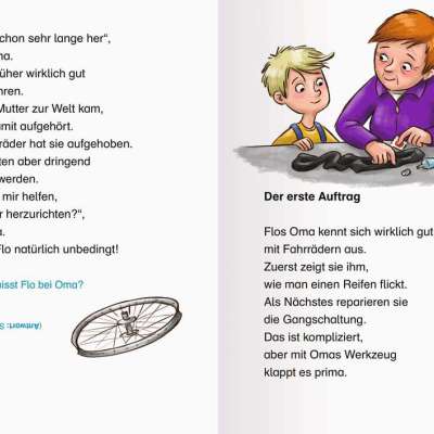 Im Schuppen von Flos Oma verbirgt sich eine perfekt ausgestattete Werkstatt. Oma ist nämlich früher Radrennen gefahren und kennt sich bestens mit dem Reparieren von Rädern aus. Gemeinsam bringen Flo und Oma zwei alte Rennräder wieder in Schuss.