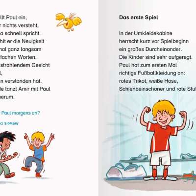 Ob Paul wirklich im Verein spielen soll? Amir ermutigt Paul dazu. Am Ende verhelfen die beiden Freunde ihrer Mannschaft zum Sieg. Eine spannende Geschichte für Fußballfans ab Klasse 2.