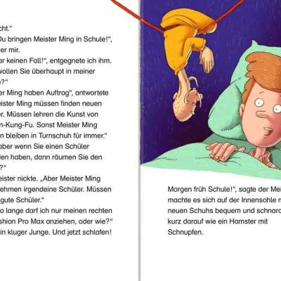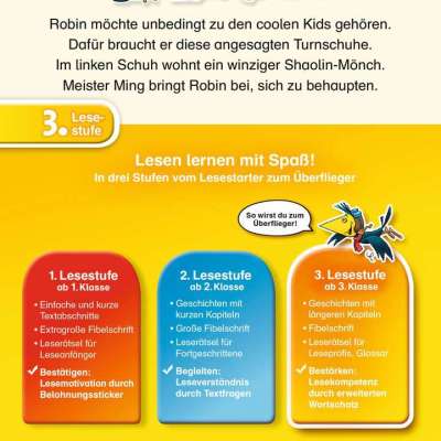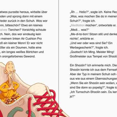Robin würde so gern zu den coolen Kids gehören! Nicht mal mit seinen neuen Turnschuhen kann er die anderen beeindrucken: Wie immer machen sie sich über ihn lustig. Doch aus dem linken Schuh bekommt er plötzlich Hilfe: Der daumengroße Shaolin Meister Ming sucht einen Meisterschüler. Mit seiner Unterstützung wächst Robin schließlich über sich hinaus und kann sich Respekt verschaffen ...