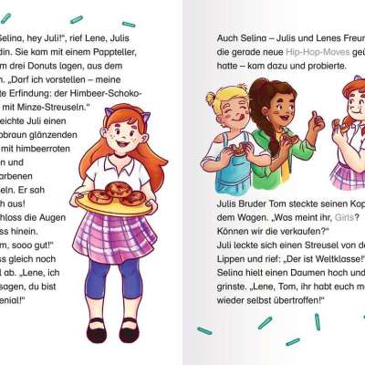 Juli und ihre Freundinnen wollen Toms Donut-Truck unterstützen und liefern mit dem Fahrrad Donuts aus. Wäre da nicht der fiese Max, der ihnen immer die süßen Teilchen klaut. Doch mit den extrascharfen "Donuts der Hölle" wird das bald ein Ende haben!