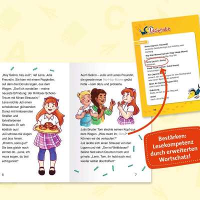 So macht Lesenlernen Spaß!Es ist Sommer. Und es ist der erste Tag der Ferien. Das passt perfekt zusammen, findet Juli und beißt in den ersten köstlichen Donut des Tages. Mit ihren Freundinnen Selina und Lene trifft sie sich jeden Nachmittag an Toms Donut-Truck. Julis Bruder Tom bäckt die besten Donuts von Sonnenstein. Doch diesen Sommer steht Tom besonders unter Druck: Er muss wirklich viel verkaufen, damit er genug Gewinn macht und alle Kosten bezahlen kann. Sonst wird er den Imbisswagen zumachen müssen. Juli und ihre Freundinnen wollen ihm helfen, indem sie Donuts per Fahrrad ausliefern. Alles klappt wunderbar, wäre da nicht Max. Er hält die drei Mädchen eines Nachmittags bei einer Lieferung einfach an und schnappt sich zwei Donuts. Am folgenden Tag stehen Max und zwei seiner Freunde sogar zu dritt da und klauen Donuts. Tom erhält Kundenbeschwerden. So kann es nicht weitergehen! Die Donut-Bande muss sich etwas einfallen lassen.Um den Jungs ein für alle Mal das Klauen zu vermiesen, kreieren Juli und ihre Freundinnen die „Donuts der Hölle“ – mit ordentlich viel Pfeffer, Chili und Peperoni. Denn: Himmlisch süß war gestern, jetzt wird es höllisch scharf! Max und seinen Freunden bleiben die Bissen buchstäblich im Hals stecken. Sie werden den Mädchen garantiert nicht noch einmal auflauern. Sie haben verstanden: Mit der Donut-Bande legt man sich besser nicht an!Spannende Freundschaftsgeschichte für Erstleser ab Klasse 3.
