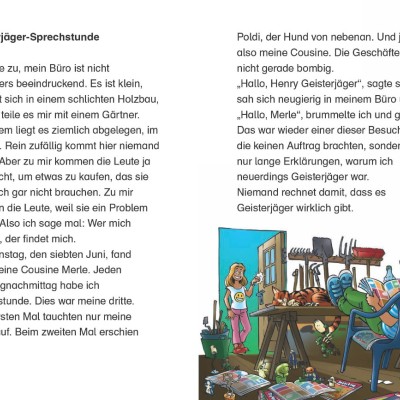 Bei Henrys Cousine Merle spukt es. Zum Glück betreibt Henry ein Geisterjäger-Büro. Mit Geistersensor und Geisterabwehrschleim wappnet er sich für die Geisterjagd.