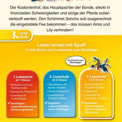 Lesen lernen wie im Flug! Die Kinderbücher der Reihe Leserabe - 3. Lesestufe wurden mit Pädagogen entwickelt und richten sich an Leseprofis ab der 3. Klasse. Durch spannende Geschichten mit längeren Kapiteln und erweitertem Wortschatz wird die Lesefähigkeit von Mädchen und Jungen ab 8 Jahren gefördert. Schwierige Wörter werden in einem Glossar erklärt. Empfohlen von Stiftung Lesen, gelistet bei Antolin.
