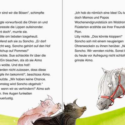 Der Reiterhof von Almas Tante ist das Hauptquartier der Hufeisenbande. Doch jetzt steckt der Kastanienhof in finanziellen Schwierigkeiten und einige der Pferde sollen verkauft werden. Den Schimmel Sancho soll ausgerechnet die eingebildete Fee bekommen - das müssen Alma und Lily von der Hufeisenbande unbedingt verhindern!