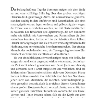 Es sind Sommerferien und wieder einmal sitzt Harry bei den unsäglichen Dursleys fest. Doch diesmal treibt ihn größere Unruhe denn je – warum erfährt er nichts über die dunklen Mächte, die inzwischen neu erstanden sind? Noch ahnt er nicht, was der geheimnisvolle Orden des Phönix gegen Voldemort ausrichten kann ... Doch dann schlägt der Dunkle Lord wieder zu. Harry muss seine Freunde um sich scharen, sonst gibt es kein Entrinnen.
