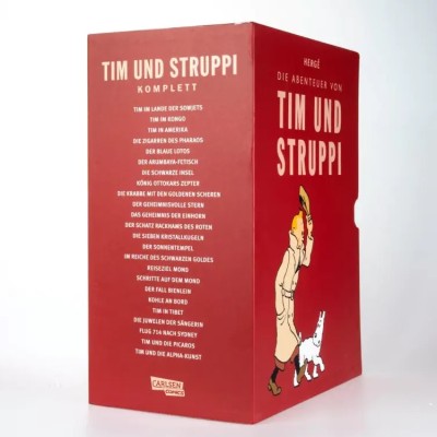 Alle jemals erschienenen Abenteuer gibt es nun in einem edlen und hochwertigen Kompaktschuber. Im eleganten Design und mit einem exklusiven Rückenmotiv versammelt der Schuber in acht Hardcoverbänden alle Abenteuer - mit Reisen nach Amerika, Tibet und sogar zum Mond.