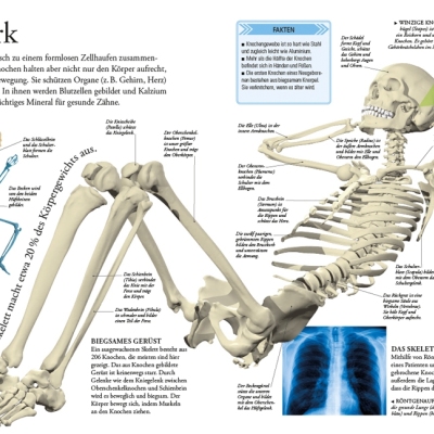 Durch die unterschiedliche farbliche Kennzeichnung der Kapitel ist ein schnelles Nachschlagen möglich. Spektakuläre und zum Teil großformatige Fotos zeigen viele anatomische Details und machen das Buch visuell ansprechend. Alle Informationen sind altersgerecht aufbereitet und selbst schwierige Sachverhalte werden auf leicht verständliche Weise erklärt. Zahlreiche Infokästen vertiefen das Wissen noch zusätzlich. Faszinierende Zahlen und Fakten lockern die Texte zwischendurch auf. Eine perfekte Ergänzung zum Biologieunterricht und ideal für Referate!