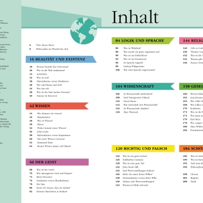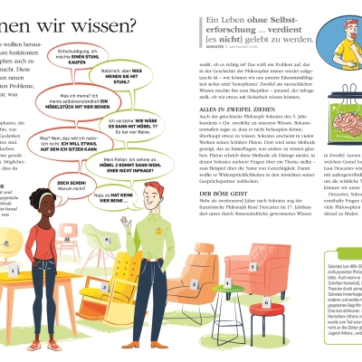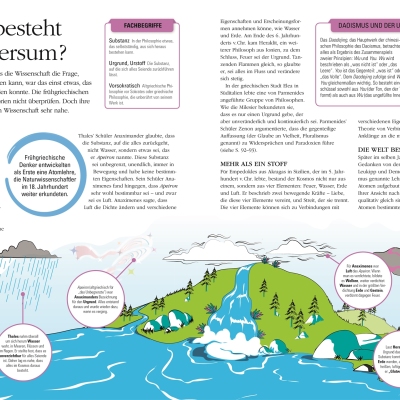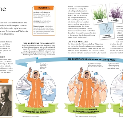 • Zahlreiche Fotos, Illustrationen im Comicstil und Diagramme unterstützen den Verständnisprozess wichtiger philosophischer Aussagen oder Fragestellungen.