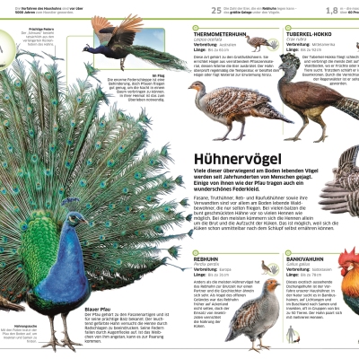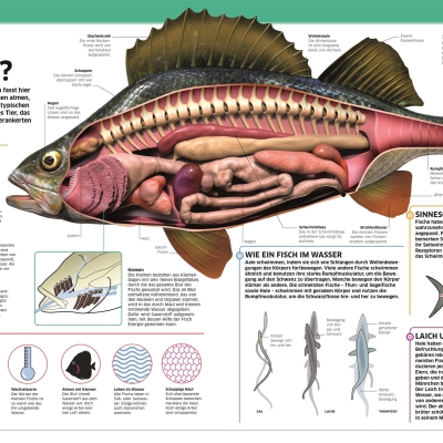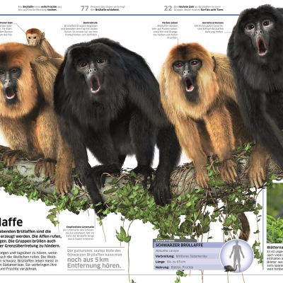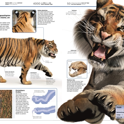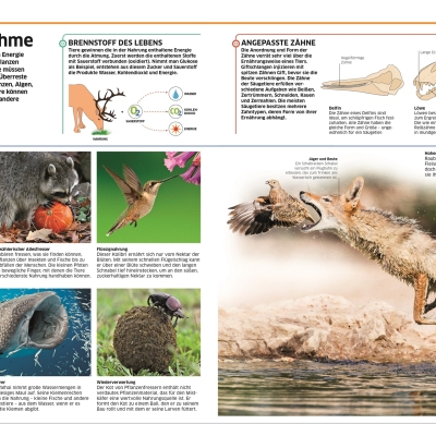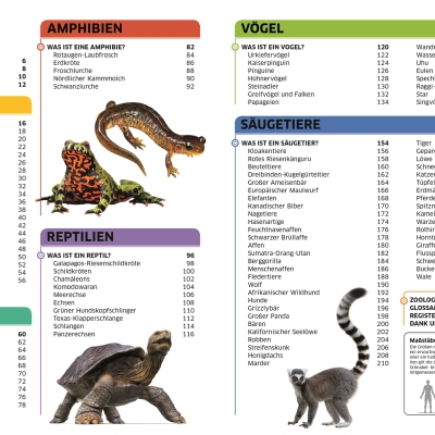 Zahlreiche spektakuläre Fotografien, Illustrationen und 3D-Grafiken zeigen euch große Tiergruppen wie Vögel, Säugetiere, Reptilien oder Fische in all ihren vielfältigen Facetten. Erlebt die langen Tentakel der pazifischen Kompassqualle, die bunte Federpracht des Raggi-Paradiesvogels oder die mächtige Mähne des Löwen – lebensecht und hautnah!