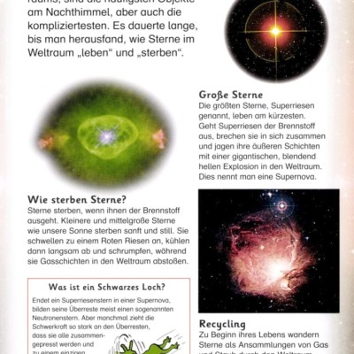 Lesen, staunen, mitmachen – das ist das Motto von memo Kids! Wie lange dauert ein Raketenflug zum Mond? Was ist ein Schwarzes Loch? In Band 11 der Wissensreihe für Erstleser dreht sich alles um den Weltraum. Kurze, lebendige Texte erzählen Spannendes über die Raumfahrt, Planeten, Sterne und Galaxien. Faszinierende Bilder zum Staunen zeigen die Ringe des Saturn, startende Raketen, Roboter auf dem Mars und vieles mehr.