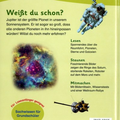 Die altersgerecht aufbereiteten Informationen sind für Leseanfänger einfach verständlich, so dass auch schwierige Zusammenhänge deutlich werden. Viele bunte Fotografien und Illustrationen veranschaulichen das Thema und helfen, das Gelesene zu begreifen. Wissenstests, Bilderrätsel und eine Weltraum-Rallye regen zum Mitmachen an und vertiefen spielerisch das Gelernte. Ein Glossar am Ende des Buches erklärt schwierige Wörter und »Weißt du das?«-Kästen heben besonders interessante Fakten hervor. Durch die optimale Ausgewogenheit von Bild und Text ist »memo Kids – Weltraum« ideal zum Vor- oder Selberlesen geeignet.