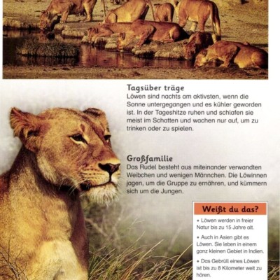 Die altersgerecht aufbereiteten Informationen sind für Leseanfänger einfach verständlich, so dass auch schwierige Zusammenhänge deutlich werden. Viele bunte Fotografien und Illustrationen veranschaulichen das Thema und helfen, das Gelesene zu begreifen. Wissenstests, Bilderrätsel und ein Löwen-Spiel regen zum Mitmachen an und vertiefen spielerisch das Gelernte. Ein Glossar am Ende des Buches erklärt schwierige Wörter und »Weißt du das?«-Kästen heben besonders interessante Fakten hervor. Durch die optimale Ausgewogenheit von Bild und Text ist »memo Kids – Große Raubkatzen« ideal zum Vor- oder Selberlesen geeignet.