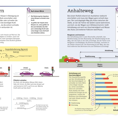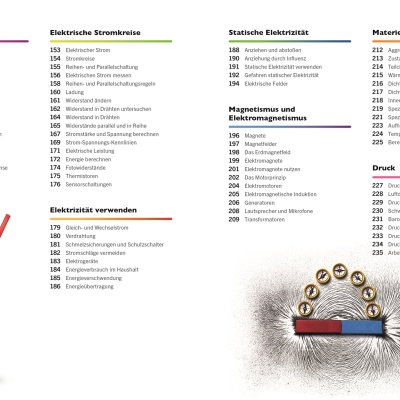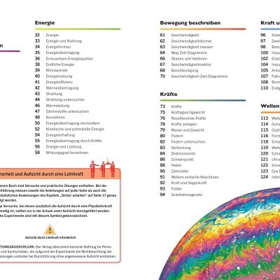 • Alle wichtigen Themen und Abläufe der Physik: Anschauliche Doppelseiten erwecken die Wissenschaft zum Leben und erleichtern Schüler*innen den Einstieg in die Materie – ob Atomaufbau, Beschleunigung, Stromkreise, Wärmeleitung oder Volumenmessung.