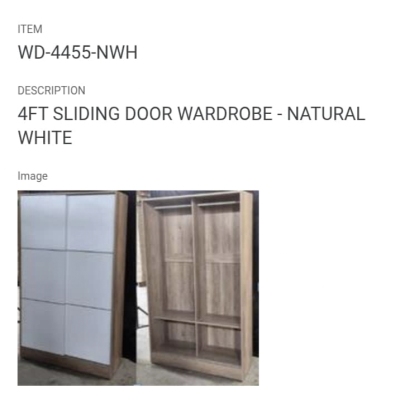 WD-4455-NWH 4FT SLIDING DOOR WARDROBE - NATURAL WHITE